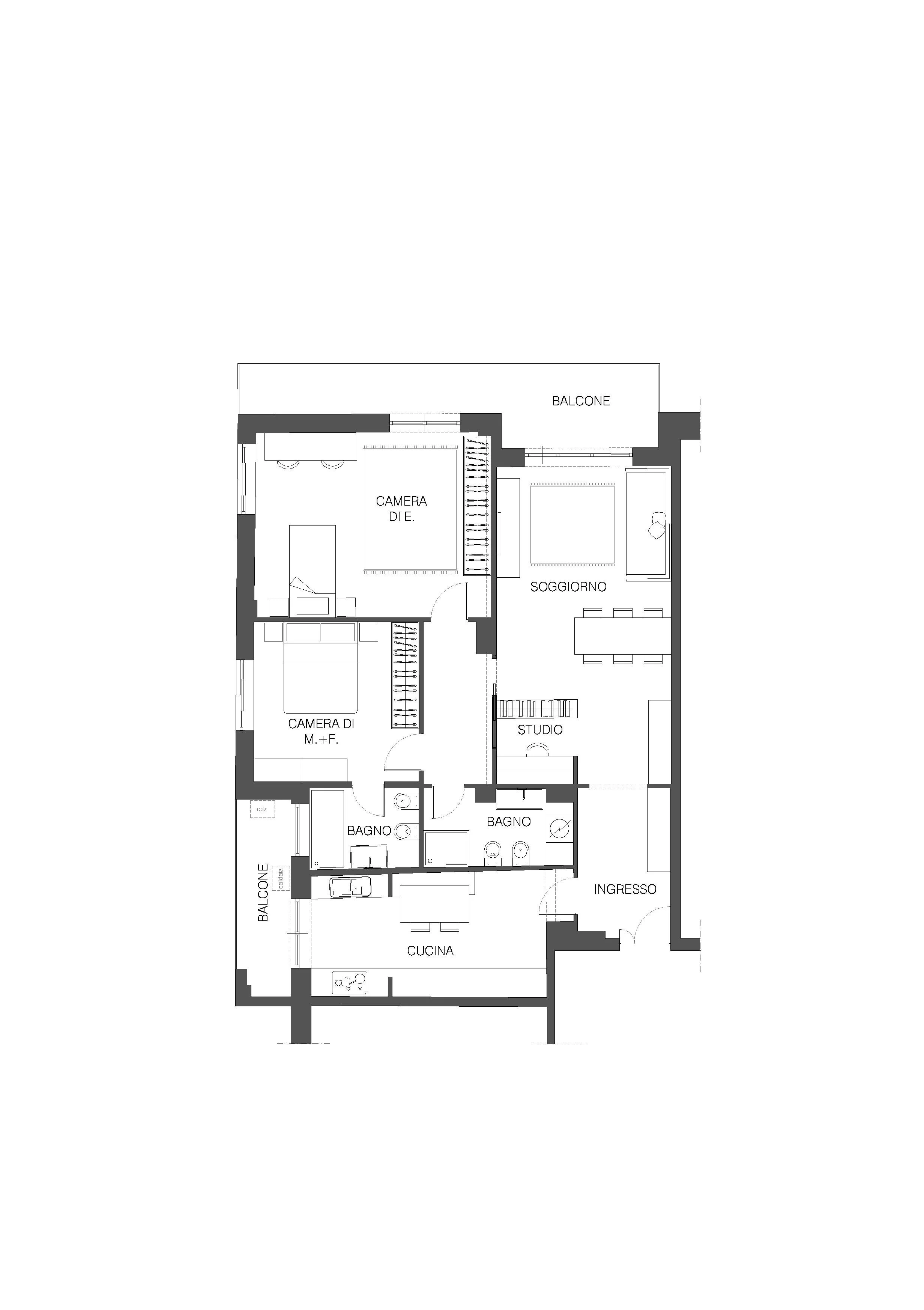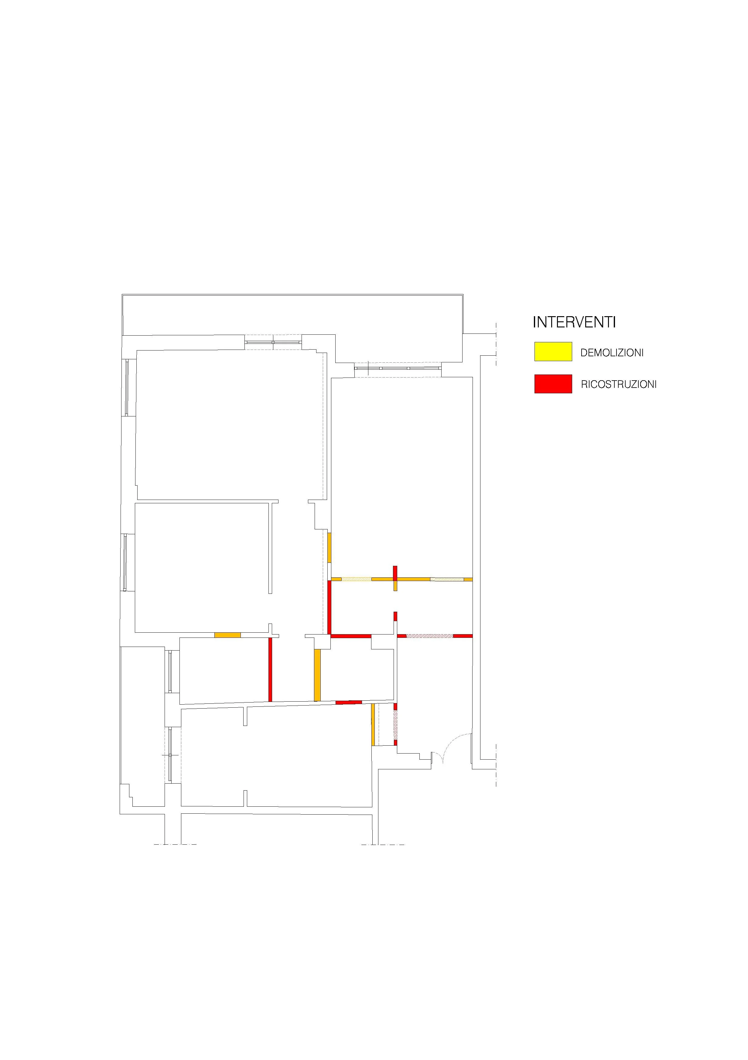 Si sono mantenute intatte una camera da letto e la cucina, sebbene avendovi apportato dei piccoli interventi di restyling con l’uso del colore. Il resto degli spazi, attraverso minime demolizioni e poche realizzazioni di tramezzi, è stato riprogettato per massimizzare la superficie dell’abitazione. Le aree che prima erano destinate a disimpegno e spazio di passaggio sono state sfruttate per la realizzazione di un secondo bagno e per allargare la zona giorno.